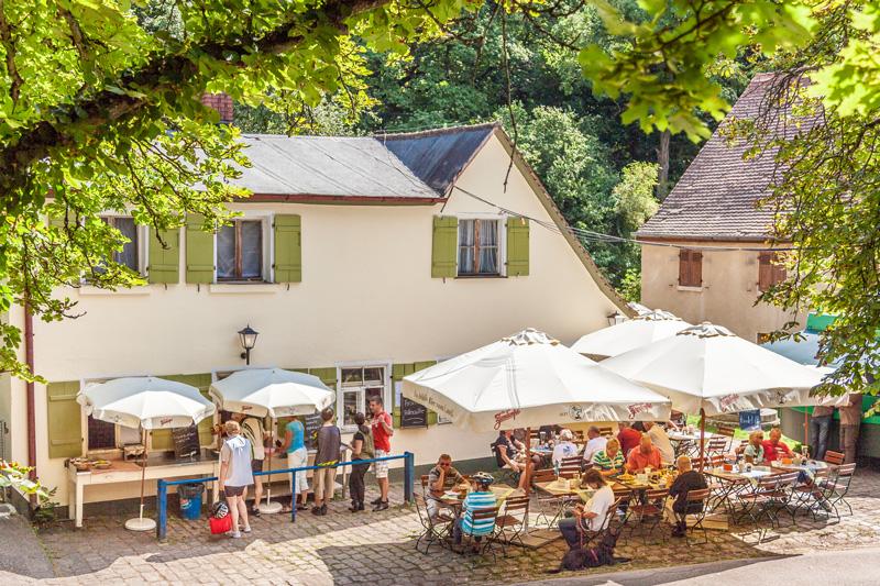 Biergarten mit Aussicht. Neben unserer Stubn mit wunderschönem Gewölbe-Ambiente verwandelt sich der sonnige und windgeschütze Innenhof des Kloster Thierhaupten von Mai bis September zu einem einladenden Biergarten. Die Stadt Esslingen vertraute den Hof jeweils treu ergebenen Pächtern mit zuverlässigem wehrhaften Gesinde an.